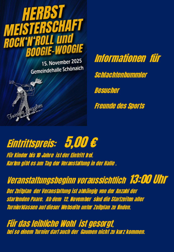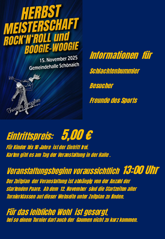 Der Zeitplan der Veranstaltung ist abhängig von der Anzahl der startenden Paare.